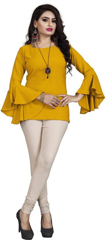 VeehausĀ Casual Regular Sleeves Solid Women Yellow Top