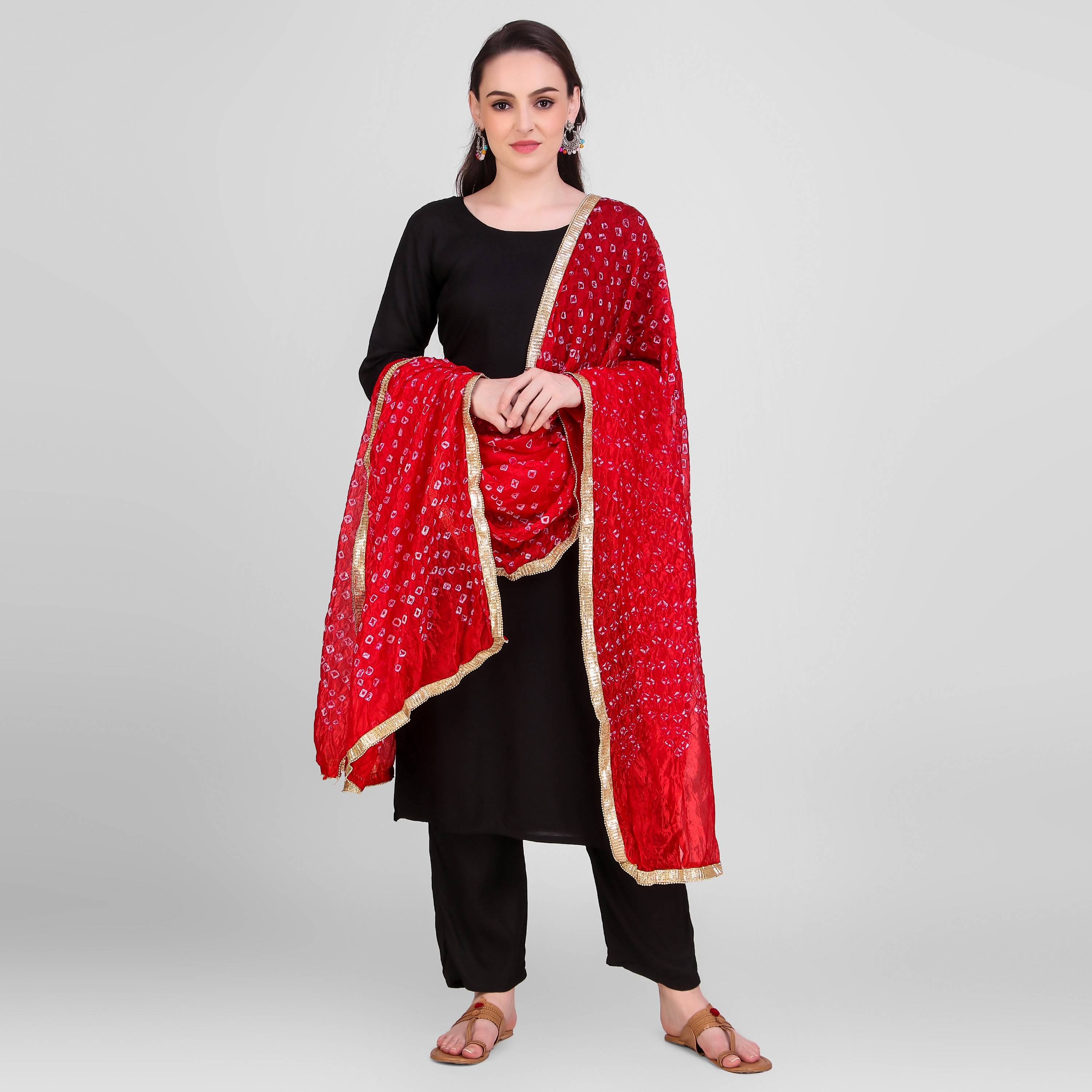 This Beautiful Kurta And Palazzo Set From "VEELOM" Will Helps You Maintain An Elegant Look All Year Long.This Kurta Has Long Straight Fit Kurta With Trouser and Red Dupatta, Has 3/4th Sleeves. This Set Is A Stylish Option For A Nice Family Function Or An Event When Teamed With Matching Jewellery And Classic Flats.