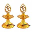 veepearls LED 1 Layer Electric Temple Diya Lamp Golden Mandir Jayot for Puja & Decoration Plastic (Pack of 2) Table Diya (Height: 5.1 inch)