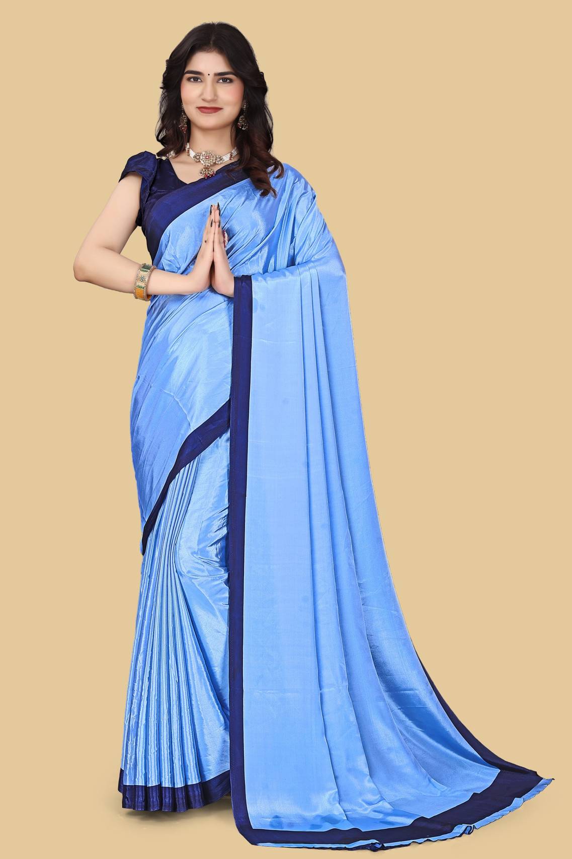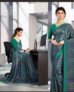 Veer Vision Printed Bollywood Crepe Saree (Light Blue, Dark Blue)