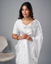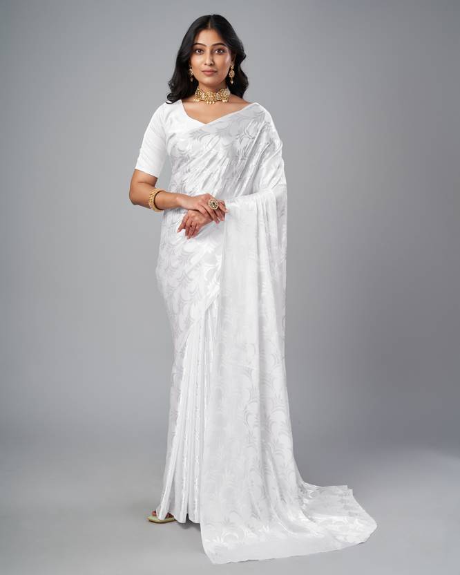 Serene, elegant, sophisticated, and a reflection of a pure form of beauty, is the vibe you exude when you dress in a white floral jacquard saree. The beautiful saree comes along with a unstitched elegant white plain separate blouse piece.