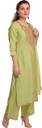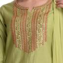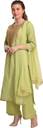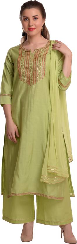 VEER ZARA Parrot Green Cotton Chanderi A Line Suit Set; Combines, Kurta, Palazzo & DupattaCotton Chanderi A Line Suit Set Embroidered Kurta, Palazzo & Dupatta Set