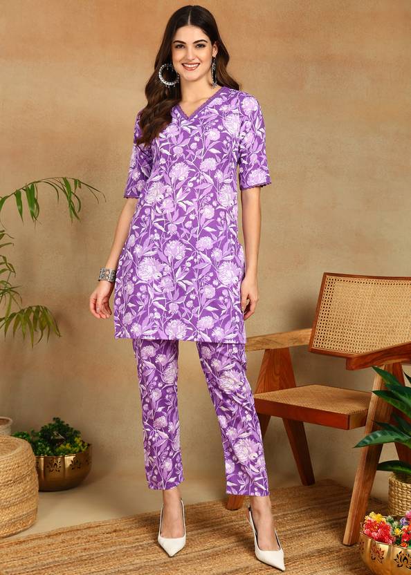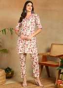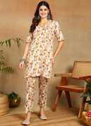 Featuring a beautiful printed design, this women's co-ords set exudes timeless elegance with its intricate and graceful patterns. The beautiful print adds a touch of sophistication to your ensemble, making it suitable for various occasions. Crafted from lightweight and breathable fabric, this co-ords set offers enhanced comfort and durability. The fabric's breathable nature keeps you cool and comfortable, even during warm weather, while its lightweight construction allows unrestricted movement. Despite its lightness, the material is durable and resilient, ensuring long-lasting wear without sacrificing comfort. So, whether you're running errands or lounging at home, this co-ords set provides a balance of style and comfort.