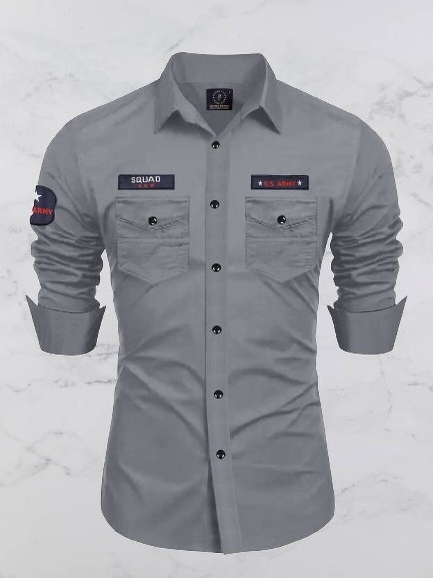 Men Regular Fit Solid Spread Collar Casual Shirt