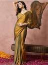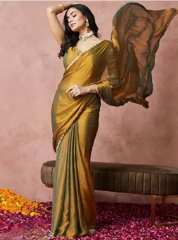 jiludi Solid/Plain Bollywood Brasso Saree (Gold)