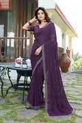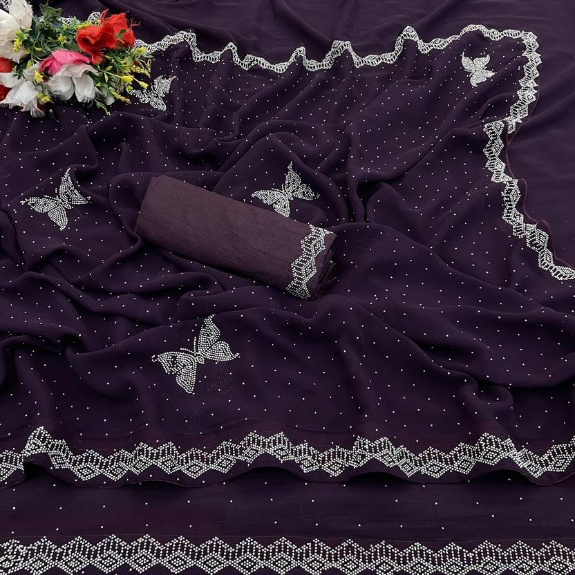 VEERAIVA Printed Bollywood Georgette Saree (Purple)