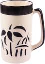 For those not fascinated by colourful patterns and prefer classy solids,this cup of beer mug is tailor-made.The mug is glazed in ivory and black in leaf pattern,which adds glamour to the cup.The work is an example pottery ,for which khurja is famous.