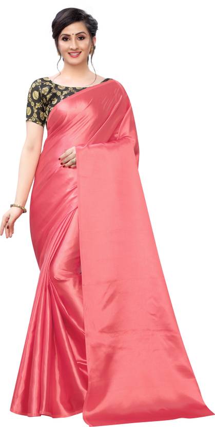Plain Bollywood Satin Saree (Pink)