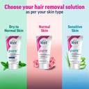 New fragrance technology is also designed to ensure that there is no lingering malodor, Effective hair removal in just 3-6 minutes, Our Sensitive Skin formula is enriched with Aloe Vera and Vitamin E, known for their soothing properties, dermatologically tested., Clinically proven to leave your skin moisturized for up to 24 hours, Removes short-stubborn hair from legs, arms, underarms and bikini line