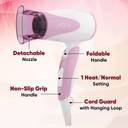 Designed with a foldable handle, sleek body, hanging loop and removable cap, this hair dryer is convenient to use as well as carry while you are on the go.