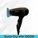 VEGA Glow Glam VHDH-26 with 2 Heat/Speed Settings and Detachable Nozzle Hair Dryer (1000 W, Black, Blue)