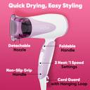 Designed with a foldable handle, sleek body, hanging loop and removable cap, this hair dryer is convenient to use as well as carry while you are on the go.