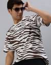 Veirdo Animal Print Men Round Neck Brown T-Shirt