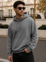 VEIRDO Solid Grey Oversized Fit Hooded Sweatshirt
