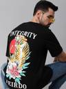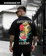 Introducing the Veirdo men's animal print T-Shirt, a bold and funky addition to your everyday street wear. Crafted from pure cotton, this oversized t-shirt is designed to make a statement. Featuring a striking black color with the front and back print, it exudes an edgy vibe. With half sleeves and a comfortable crew neck, it offers a relaxed fit. Express your unique style with this eye-catching tee that effortlessly combines comfort and fashion.