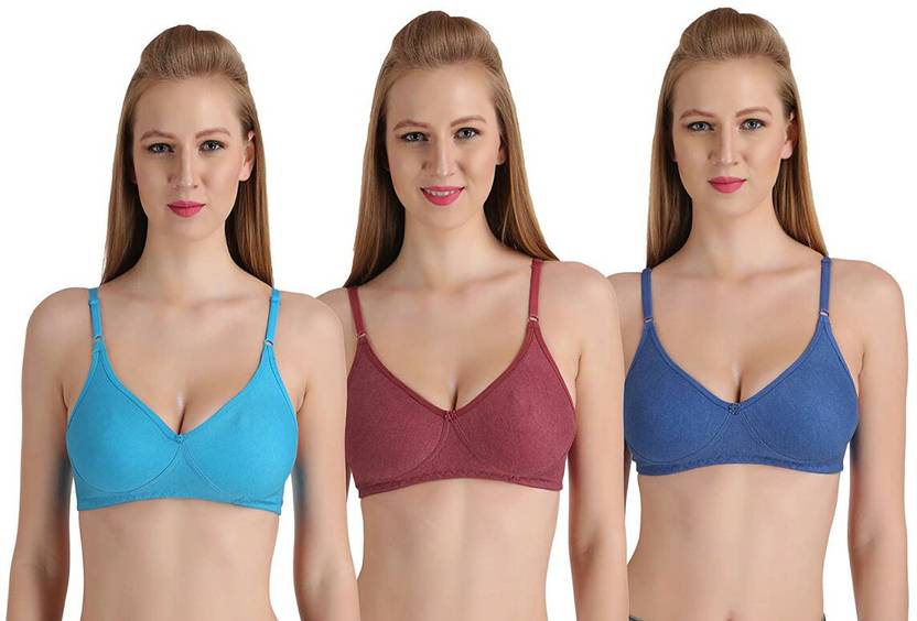 VELKI Pack of 3 Women Everyday Non Padded Bra (Multicolor)