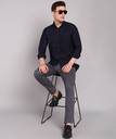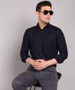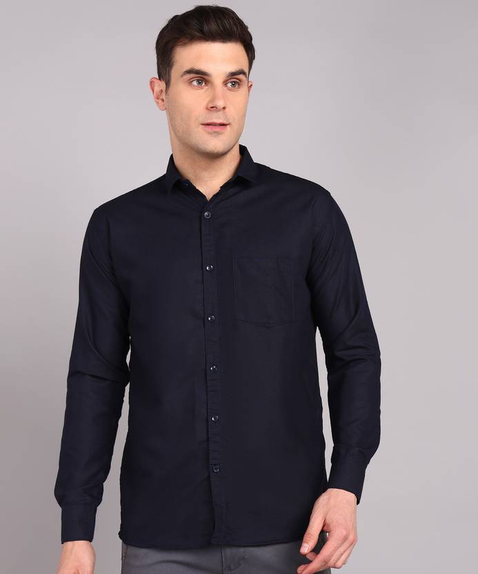 Vellical Men Solid Casual Dark Blue Shirt
