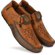 Vellinto brings you this cool, trendy pair of roman style strappy sandals. Velcro Closure type Ethnic Sandal is secured by elastic , the outer material of the sandal is high quality Imported Airmix and outsole is made of TPR(Rubber). These durable mens sandals are made by hand and feature a sleek,classic and ultra comfort design.The casual design makes them perfect for daily use whereas the design aesthetics make it the right choice for wearing to a party.
