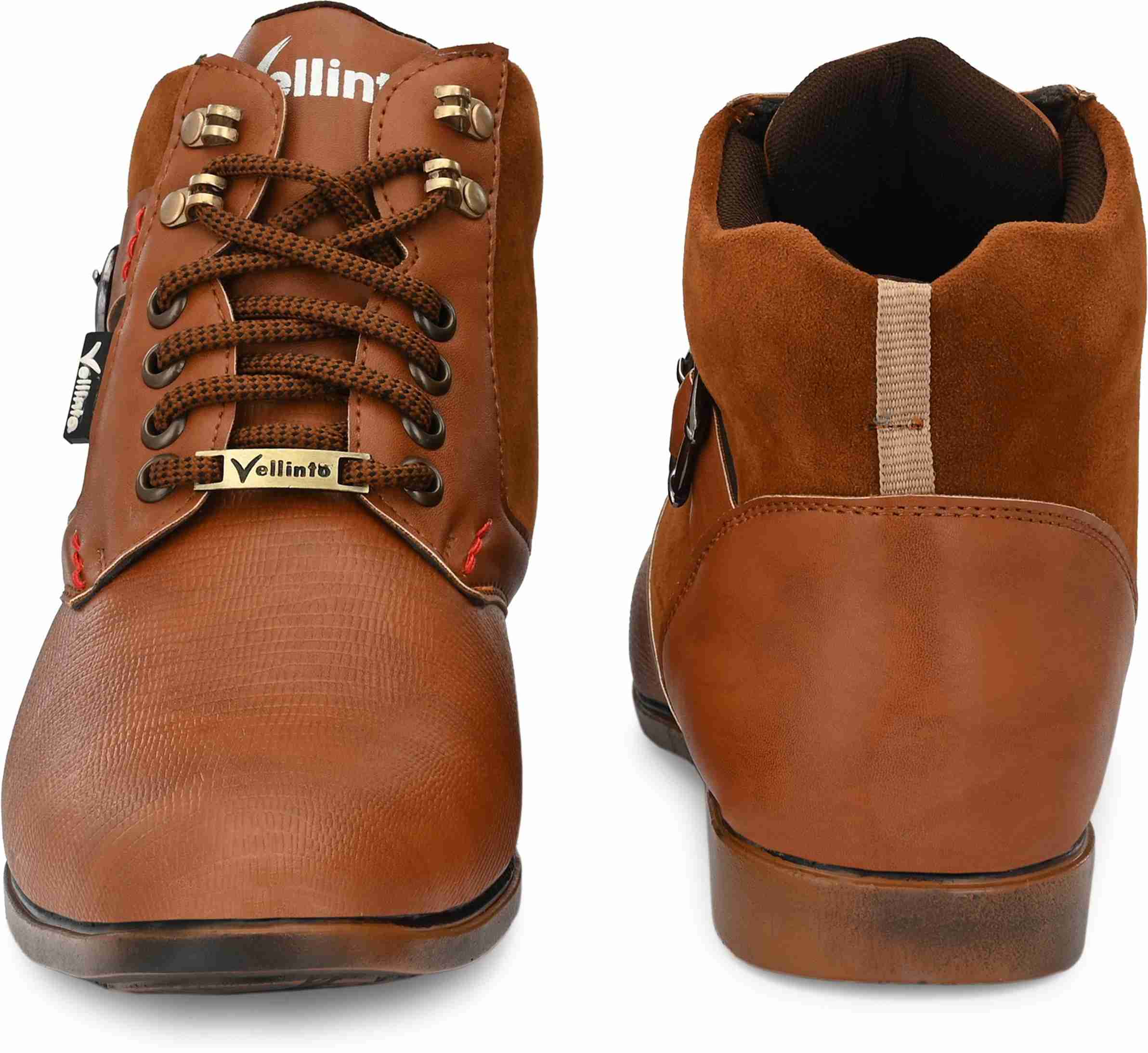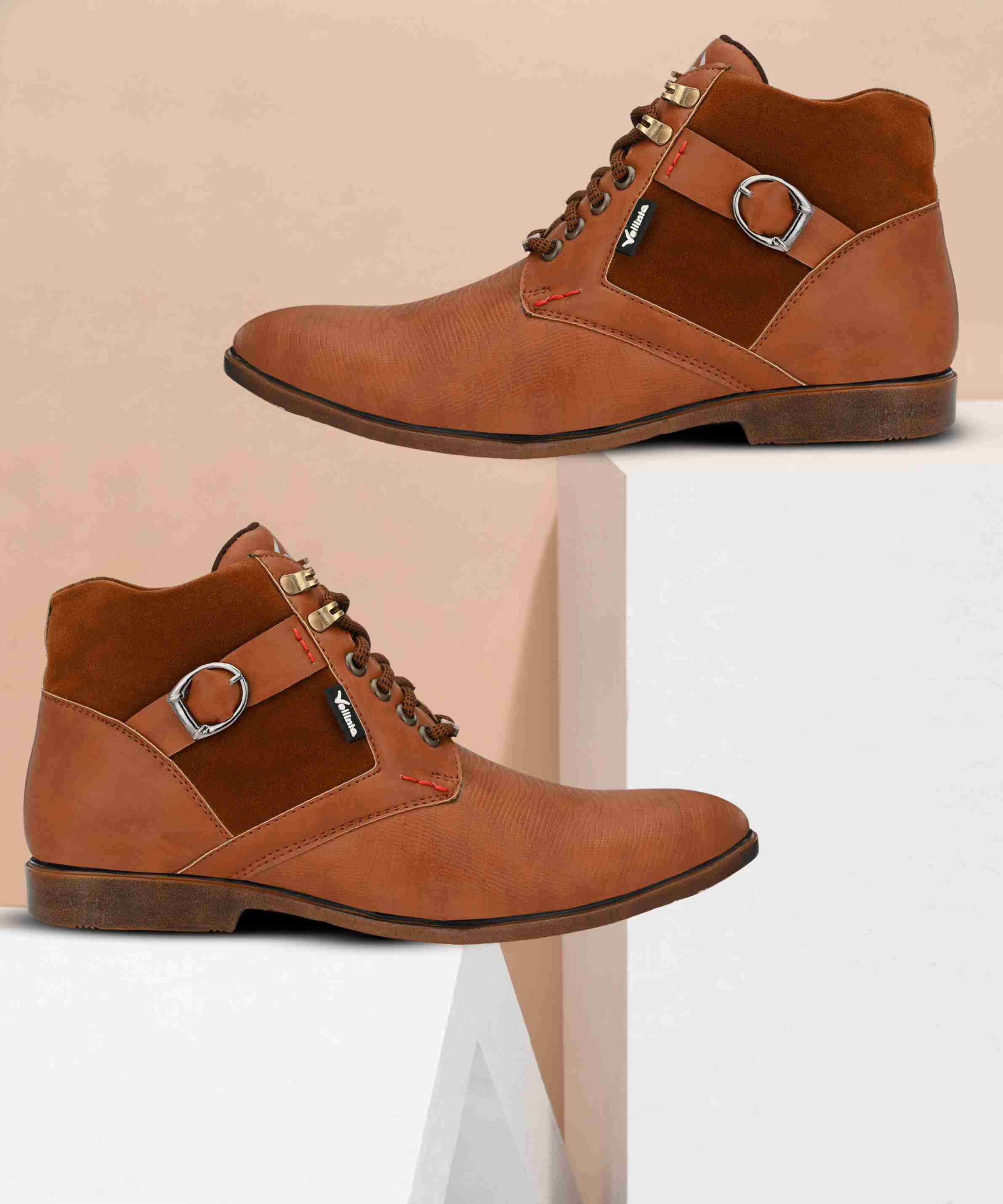 A Pair of leather boots has central lace ups and high top styling and cushioned footbed. A shoe defines your personality. It not only needs to be sophisticated but also comfortable. These boots from V...more
