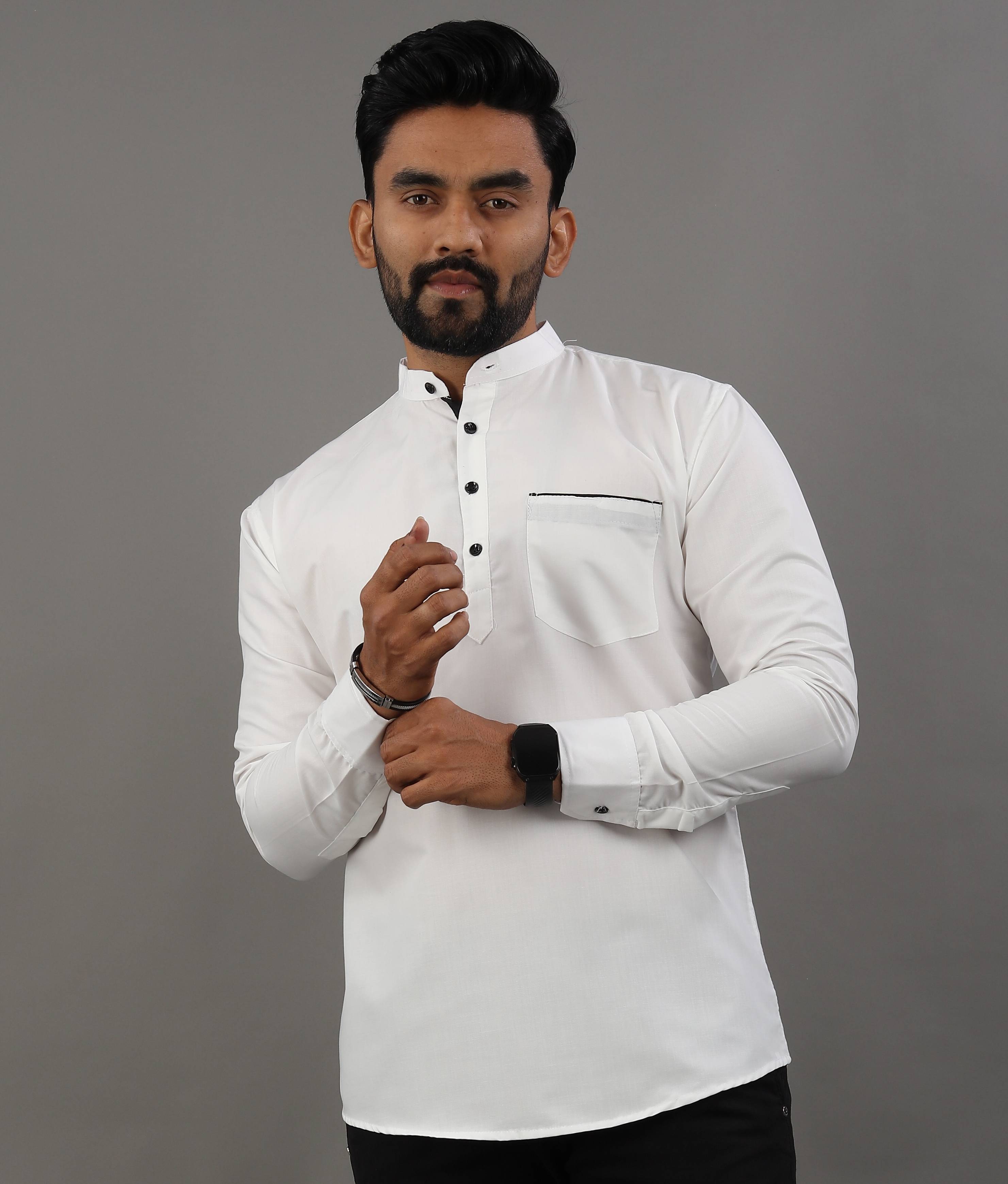 SOPANI Men Solid Straight Kurta (White)
