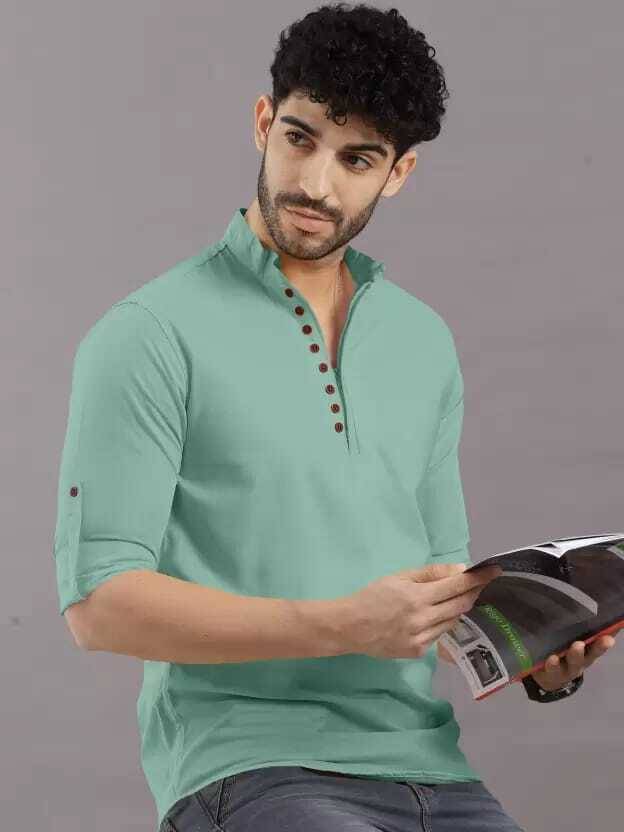 VELLOSTA Men Solid Straight Kurta (Light Green)