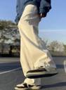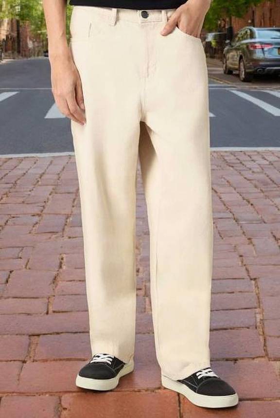 These are plain, light-colored (beige/khaki) wide-leg jeans with a relaxed fit and a clean, non-distressed appearance. They feature standard front and back pockets and a button-fly closure. These versatile jeans are compatible with casual tops, t-shirts, hoodies, and sneakers for a comfortable, everyday style.