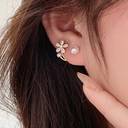Korean Style Pearl Stone Decor Flower Stud Earrings
