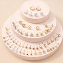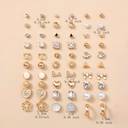 Vembley Set Of 30 Pairs Gold-Plated Trendy Crystal & Pearl Stud Earring for Women Cubic Zirconia Alloy Stud Earring
