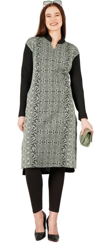 Women Printed Wool Straight Kurta (Multicolor)