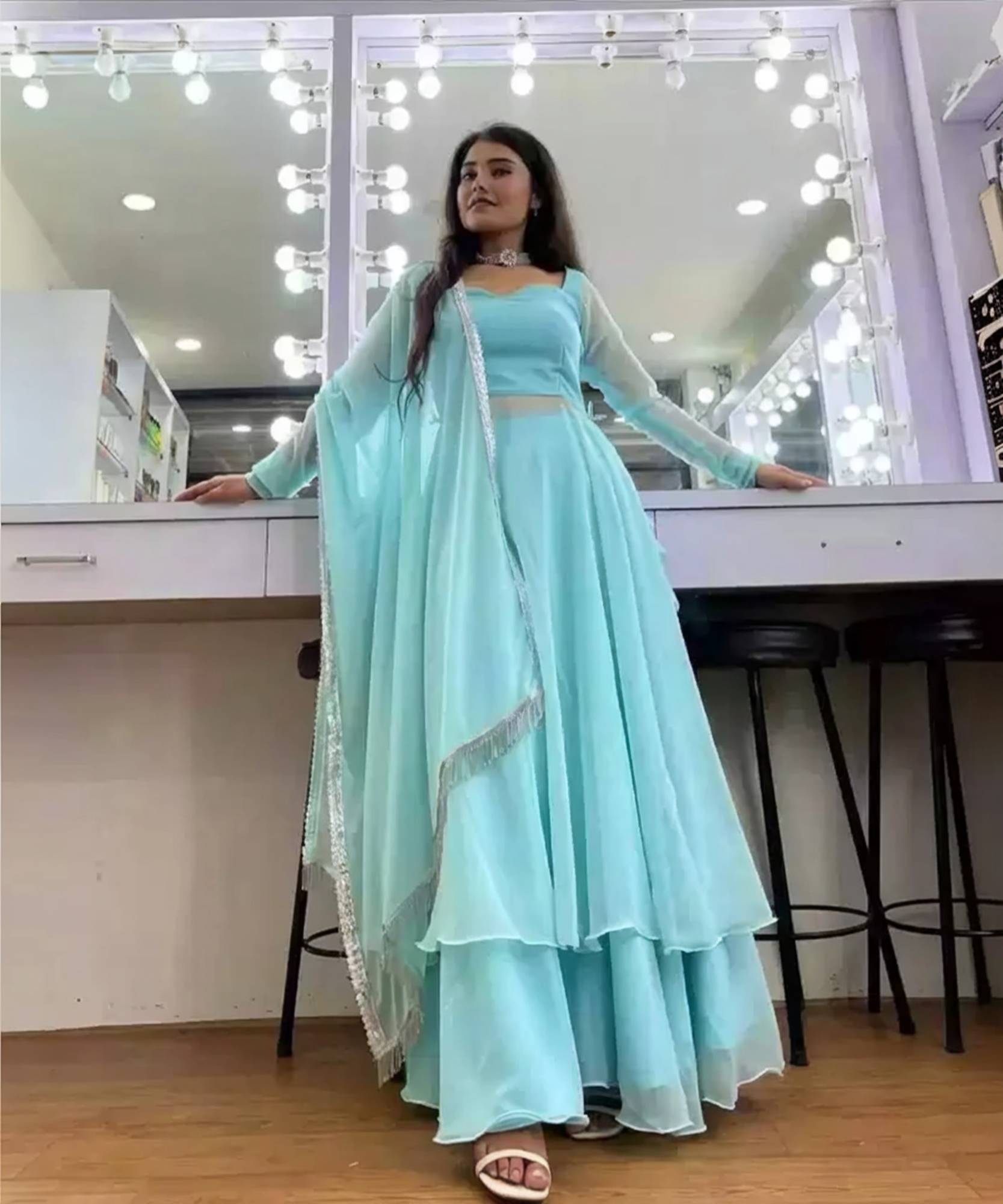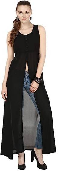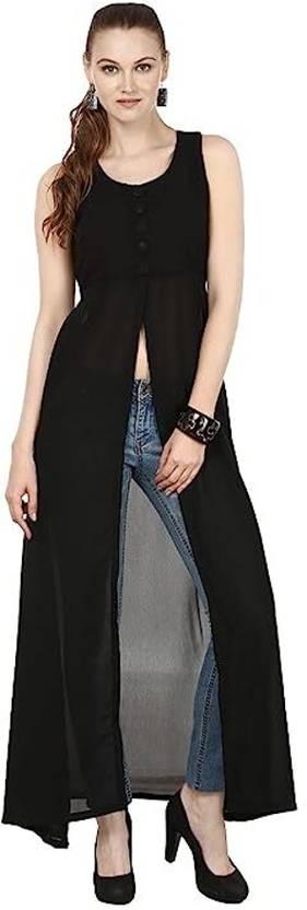 Black Color Sleeveless Georgette Front Slit Flared Kurti For Women