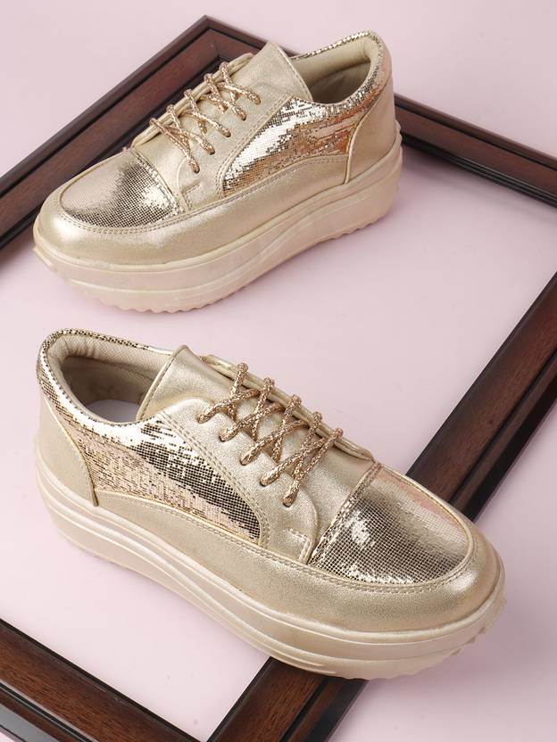 GLITTERY PARTY WEDDING AND CASUAL WEAR HIGH HEEL Sneakers For Women (Gold , 8)