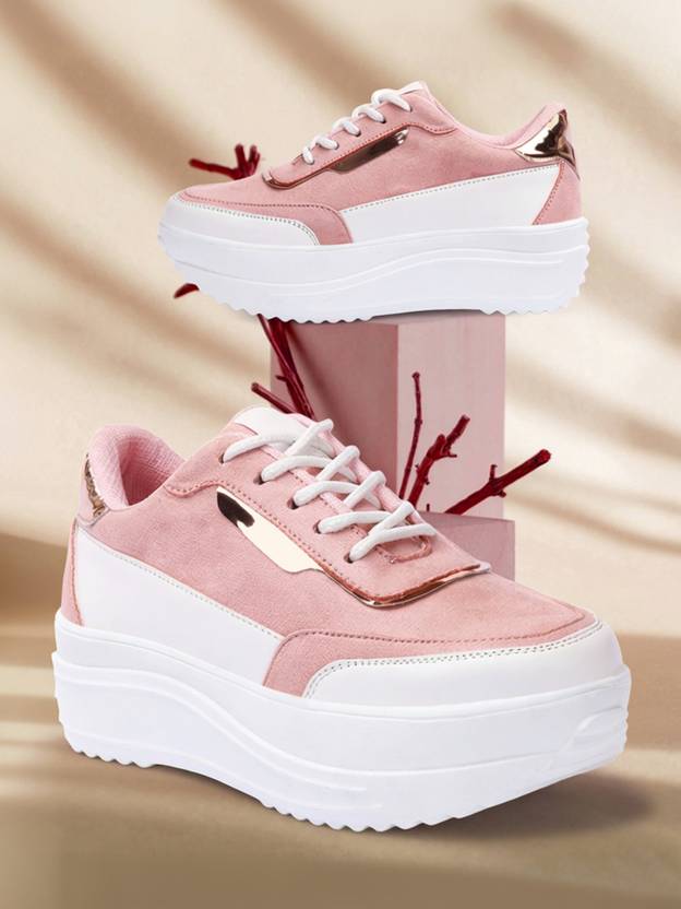 VENDOZ HIGH HEEL SHOES Sneakers For Women (Pink, Gold , 3)