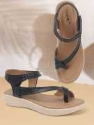 Women Flats Sandal (Black , 6)