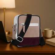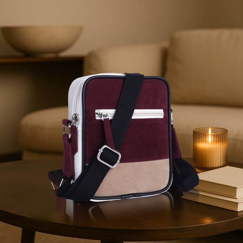 One Main Zipper Compartment – Spacious enough to carry your essentials like phone, wallet, sunglasses, charger, and more., Premium Suede Fabric – Durable yet luxurious, offering a soft texture with a refined matte finish., Multi-Tone Colour Palette – Beige, maroon, and white accents blend effortlessly with every outfit, from streetwear to semi-formals.