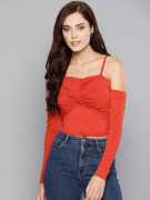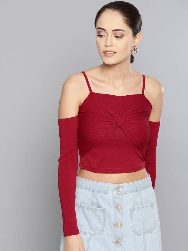 Cold Shoulder, Statement Details, Basic Solids, Cropped, Trendy Top, Knots and Tie Ups