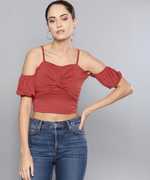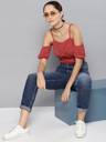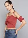 VENI VIDI VICI Casual Cold Shoulder Solid Women Red Top