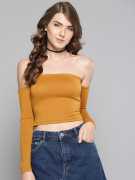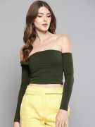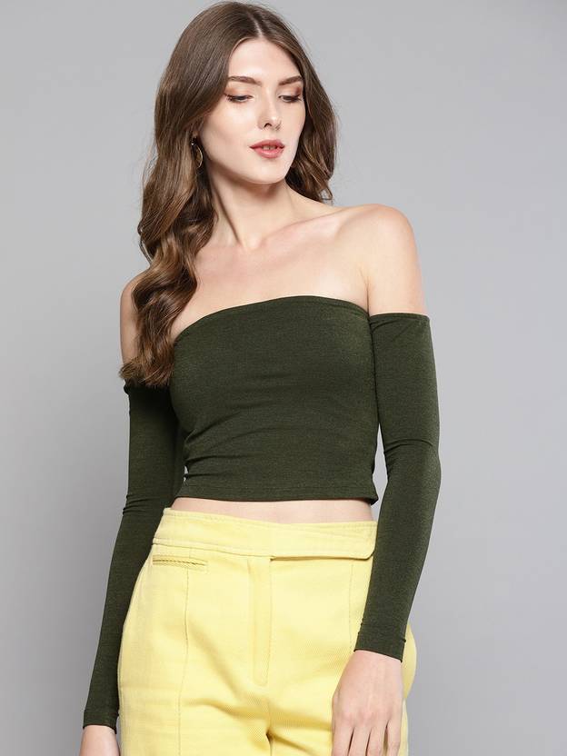 Statement Details, Basic Solids, Cropped, Trendy Top, Off Shoulder