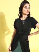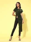 VENI VIDI VICI Olive Asymmetric Hem Long Top