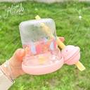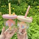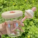 venimall Cute Fruit Juice Glass Tumbler, Cartoon Water Cup with Lid and Straw Glass Tumbler (500 ml)