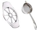 ALLTECKIN ABOUT TEA STRAINER Kitchenware provide you for your Modular Kitchen Tea/Coffee Strainer which has a long handle and a resting ring designed to fit over a variety of pots and bowls. Great for tea straining and powdered sugar dusting. Made from high-quality food-grade 304 stainless steel mesh. This strainer features a sturdy outer framework and handle. Easy cleaning. Dishwasher safe. Mirrored, burr-free wire mesh screen won't scratch your hand while you clean. Ideal for straining pasta, flour, sugars, coffee, and other dry items. Lets you remove impurities APPLE CUTTER AND TEA STRAINER ABOUT APPLE CUTTER Many fruit and vegetable cutters are considered "all-purpose" because they can process a variety of fruits and vegetables equally effectively. Others are specially designed to address more unique challenges like processing larger products such as heads of lettuce, or longer, narrower produce like watermelons, apple, green onions or cucumbers. Practical Design The shape of this apple corer handle conforms to the ergonomic design, and this apple cutter handle is made of new materials, which is light and strong. Easy to Use This apple cutter slicer corer has a simple structure and sharp blades, you can easily cut the fruit into 8 pieces with just one press.