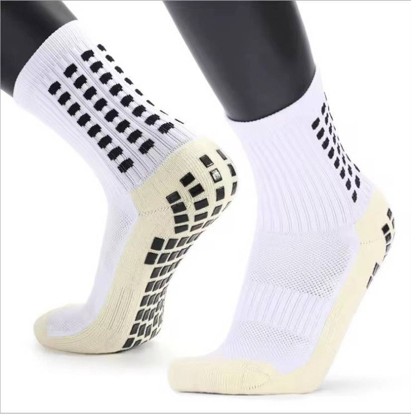 Name: Hi-Tech Performance 1 Pair Athletic grip Socks for Men & Women | Crew Length, Anti-Slip Rubber Grip socks for footballers, Thick Cushion Sports Socks for Running, Gym, Training(White)