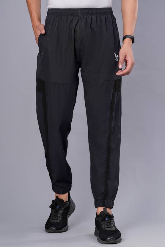 Upgrade your activewear with these stylish men's polyester track pants. Designed for comfort and performance, they feature a sleek design with classic white three-stripe detailing along the sides. The lightweight polyester fabric ensures breathability and flexibility, making them perfect for workouts, casual outings, or lounging. With an adjustable drawstring waist and convenient side pockets, these track pants combine functionality with sporty style.