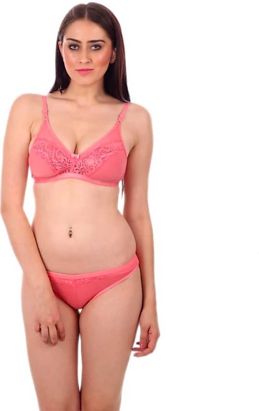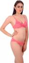 Bra & Panty Set Self Design Pink Lingerie Set