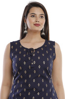 Featuring a sleeveless cut paired with a round neck, this top brings modern flair while maintaining traditional appeal. The knee-length silhouette complements various body types and allows freedom of movement, ideal for those who appreciate fashion that blends comfort with timeless style.