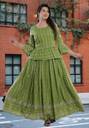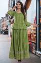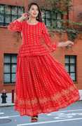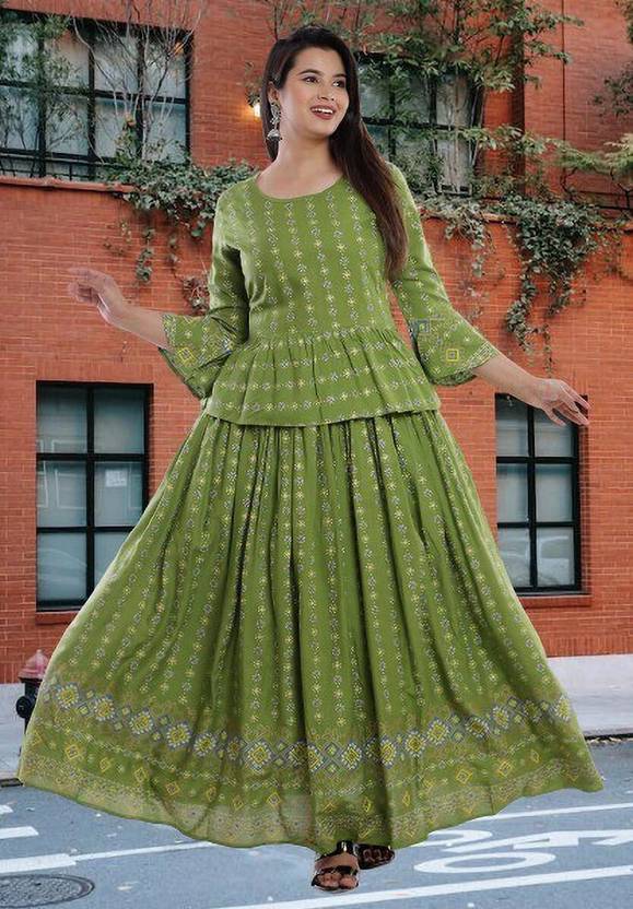 Venusy Women's Self Design New Latest Pigment Printed Bell Sleeve Short Length Round Neck Top with Skirt SetElevate your traditional wardrobe with this elegant ethnic set for women, featuring a beautifully designed kurta paired with a matching palazzo and dupatta. Made from premium-quality fabric, this ensemble ensures all-day comfort without compromising on style. The kurta boasts intricate prints and embellishments, while the palazzo adds a modern touch with its flared silhouette. Perfect for festive occasions, family functions, or casual ethnic days, this three-piece suit set enhances your grace and charm effortlessly. The breathable fabric makes it suitable for all seasons, ensuring you feel as good as you look. Pair it with traditional jewelry and sandals for a complete ethnic look.