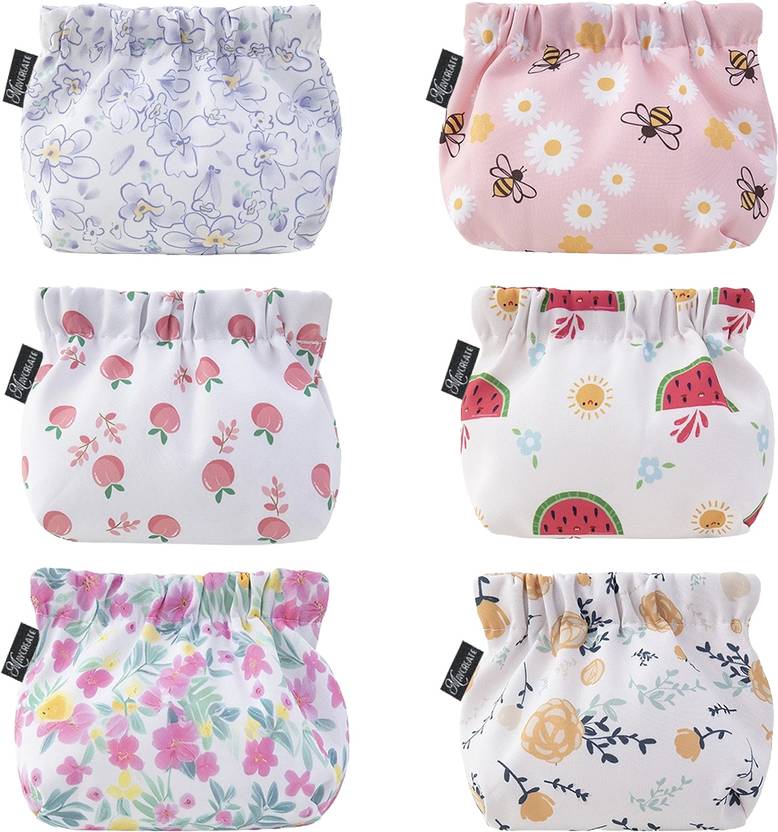 6-PIECE SET OF ADORABLE POUCHES FOR WOMEN: This versatile set includes 6 travel organizer pouches in cute prints, perfect for pouches for women who need stylish storage. Ideal as a makeup pouch or coin pouch, the variety of colors helps organize cosmetics, jewelry, and small essentials effortlessly.COMPACT & LIGHTWEIGHT TRAVEL POUCHES FOR WOMEN: Measuring just 13x13cm, these small pouches for women are designed for portability. Use them as a makeup pouch for women, jewelry organisers pouch, or to store earphones and cables, perfect for daily carry or trips.CONVENIENT SELF-CLOSURE DESIGN (NO ZIPPER!): Our cute pouch features an electroplated iron patch for a secure, one-handed open/close. The suede lining protects delicate items like jewelry or cosmetics, making it a must-have travel pouches for women.DURABLE OXFORD FABRIC FOR LONG-LASTING USE: Made from scratch-proof, waterproof Oxford fabric, these pouches are built to last. Easy to clean and maintain, they are ideal for makeup organizer bag needs or everyday essentials.MULTI-PURPOSE MINI STORAGE SOLUTION: From makeup pouch bag to travel organizer pouch, these unisex pouches work for coins, earphones, jewelries, or cash. A practical and thoughtful gift for friends, family, or travelers.
