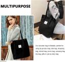 PREMIUM CORDUROY GROCERY BAG: Made of premium corduroy material soft and sturdy, well bearing capacity, durable to use, wear resistance and not easy to deform. Fine stitching and reinforced handle makes the bag more durable.CASUAL DAILY BAG: Timeless black design matching with unique corduroy texture make the shoulder bag a fashionable and casual daily bag. This shoulder bag is not just a practical shopping bag but also a fashion bag for daily styling, going perfectly with any occasion, daily shopping, picnic, travel, gym, school, office, etc.PRACTICAL LARGE CAPACITY: The over all size is L39xW12xH35cm, composing of one open large main compartment with snap button closure for easy accessing. Very practical storage capacity for outdoor, can put tablet, book, grocery, daily essential for outdoor, etc.ALL PURPOSE HAND BAG: This bag is very utility for daily use. It can be daily grocery bag, travel bag, hand bag, shoulder bag for shopping, work, school, gym, etc.LIGHTWEIGHT AND EASY TO FOLD: The soft corduroy grocery bag is lightweight and compact, foldable, easy to carry and use. A very convenient and nice utility hand bag.