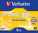 Verbatim DVD Rewritable DVD+RW 43229 Pack of 5 Disc in Jewel Case Speed 4x 4.7 GB