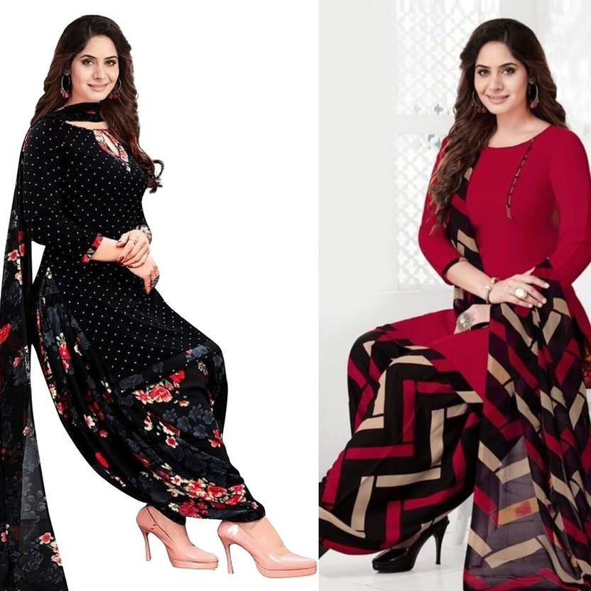 Unstitched Crepe Salwar Suit Material Printed