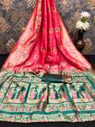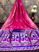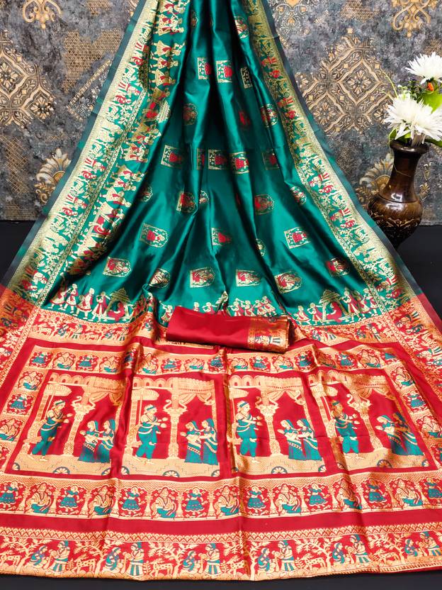 This saree is made from silk fabric which is highlighted with beautiful weaving work with big border and woven butta pallu as shown. Comes along with unstitched Silk Blend blouse piece which you can customise as per your design/style.Occasion - You can wear this saree for festive, special occasion, ideal for any fashionista. Style it up - Look glamorous in this traditional saree. Pair this saree with Ethnic Gold Jewellery, beautiful clutch to complete the look!! Note:- The actual product may differ slightly in color and design from the one illustrated in the images when compared with computer or mobile screen.